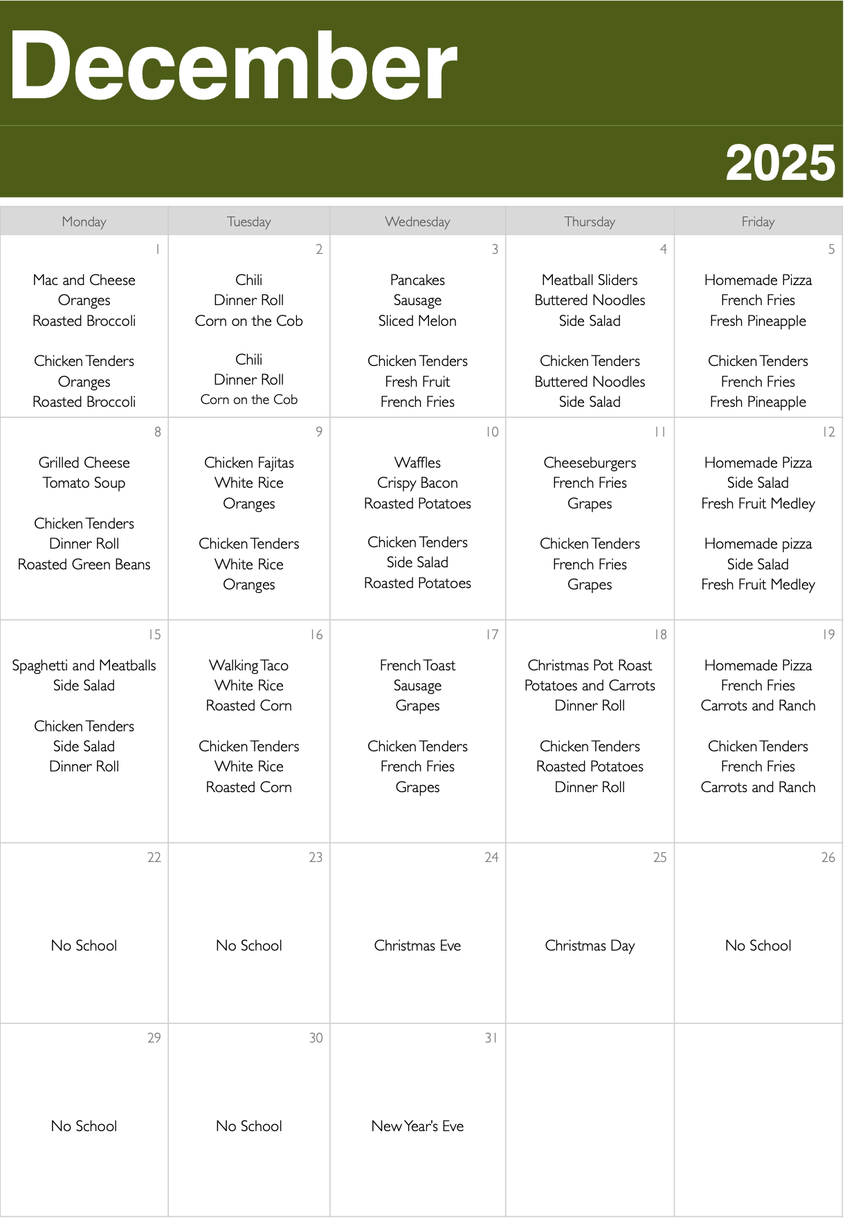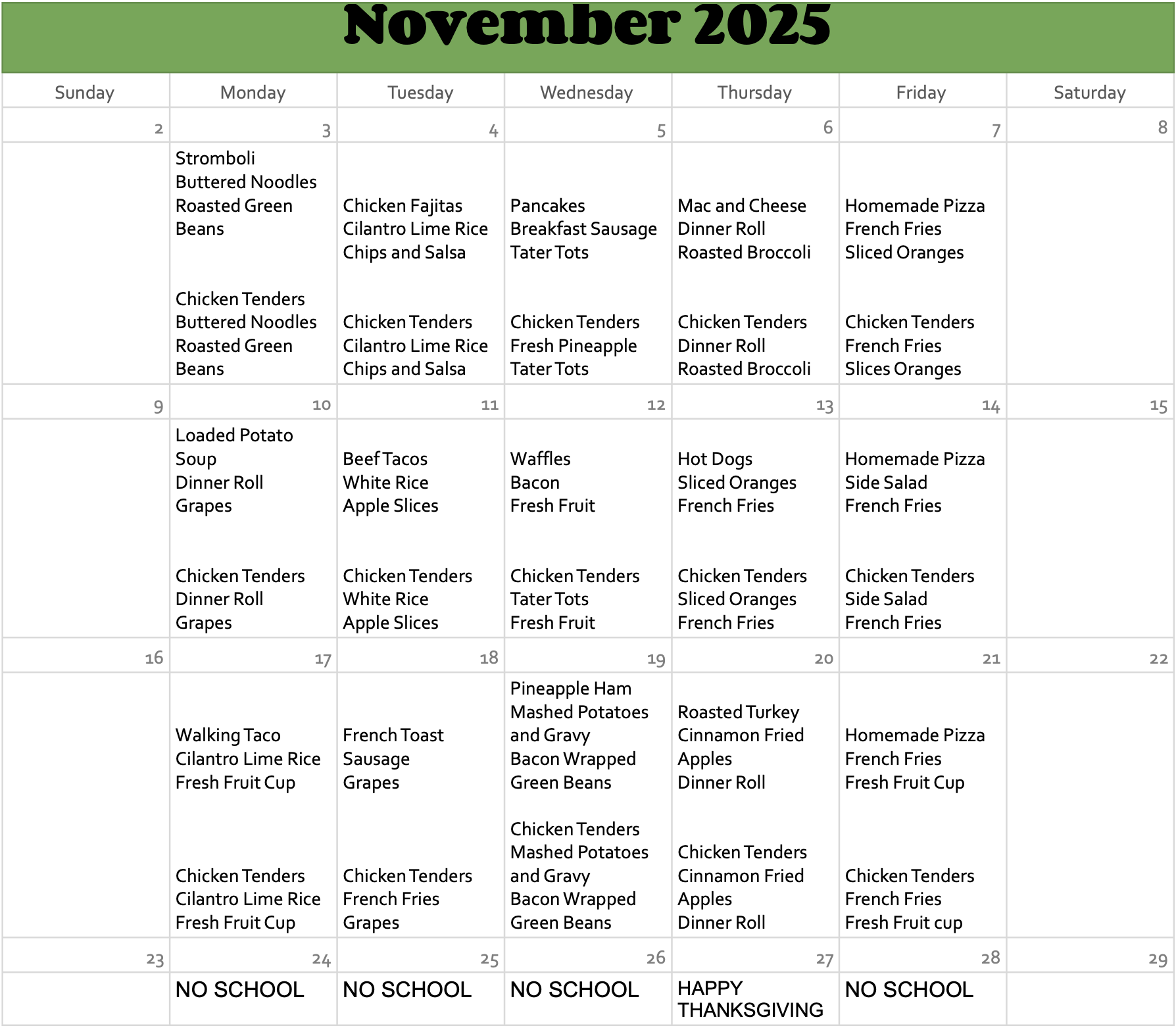 Students at Saint Raphael have the option of packing their lunch or purchasing a lunch through the Hot Lunch program. Please view the menus below to help determine if your child will be packing lunch or buying throughout the school year. All lunch payments are made through the FACTS Family Portal. In the sections below you will find additional information on the Hot Lunch program including: Menus & instructions on adding funds to your Family Portal lunch account. Any questions regarding allergens should be directed to